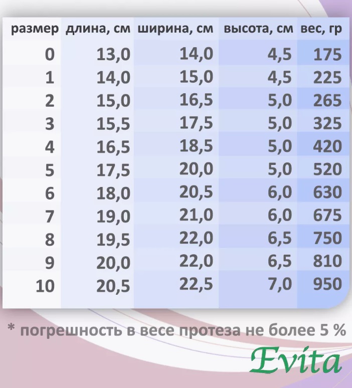 3. Мысленно проведите линию влево и определите какой экзопротез соответствует вашему размеру белья.