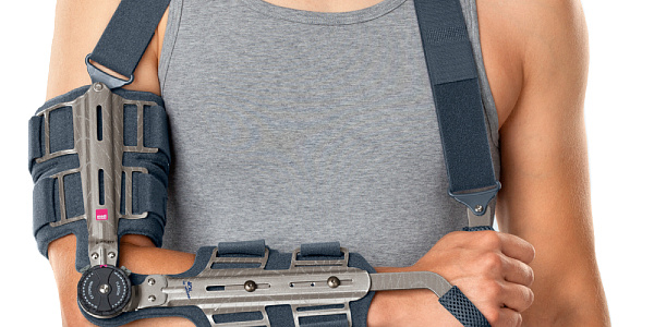 С помощью ортеза medi Epico ROMs можно иммобилизовать или ограничить подвижность локтевого сустава. Особенностью ортеза является значительное ограничение вращения костей предплечья относительно друг друга. Таким образом, ортез обеспечивает максимальный функциональный покой локтевому суставу, создавая благоприятные условия для быстрого выздоровления. С помощью шарнира QuickSet можно ограничить подвижность локтевого сустава на этапе мобилизации в соответствии с индивидуальным планом лечения. Амплитуда сгибания и разгибания может быть задана в пределах от 0° до 120° с шагом 10°. Для более плотного контакта с конечностью алюминиевую раму можно смоделировать. Длина телескопической опоры для кисти также регулируется.