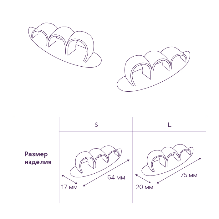 подушечки имеют петлю на второй, третий, четвертый пальцы для стабильного расположения под пальцами стопы;