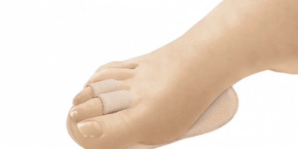 Уникальная конструкция с липучкой на нижней части ортеза удерживает ленту в исходном положении, позволяет ей не вытягиваться из-под пальцев при ходьбе.